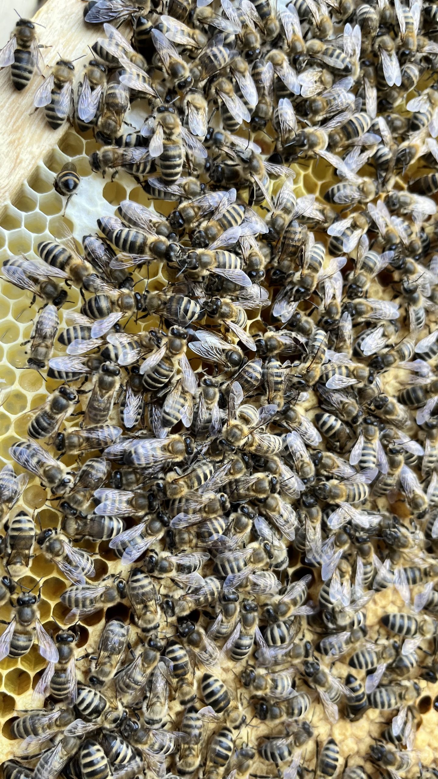 Rähmchen aus dem Brutraum mit Eintrag von Nektar und verdeckelter Futterzellen