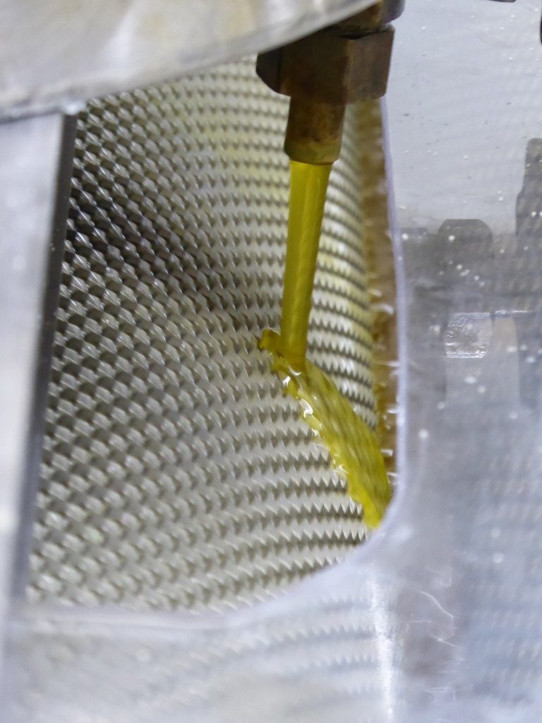 Rähmchen aus dem Brutraum mit Eintrag von Nektar und verdeckelter Futterzellen